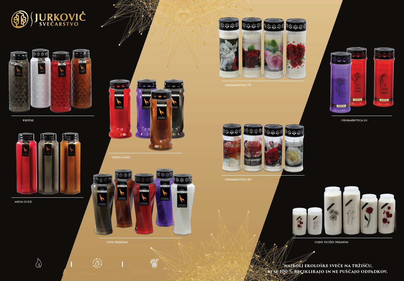 We have updated the premium line of candles which we can claim is the most organic candle line on the market. The purpose is to be able to commemorate the deceased loved ones without harming the environment. A large proportion of recycled materials are already used in production, and the candles are 100% recycled after use. The special feature of premium candles is that they enable better combustion and longer burning – some can burn for up to 14 days.